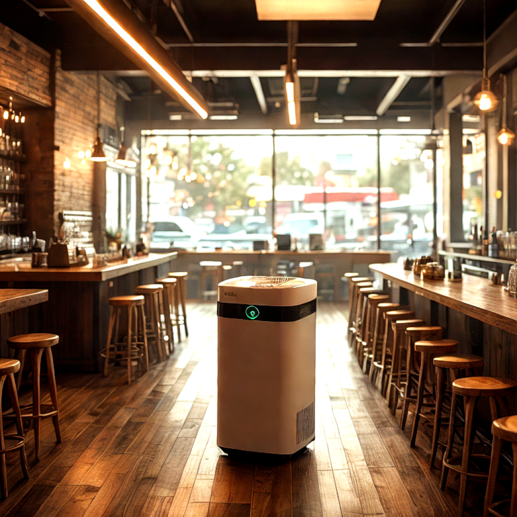 ติดตั้ง Airdog X5 จำนวน 3 เครื่องในโซนรับประทานอาหารเพื่อกำจัดควันและกลิ่นอาหาร พร้อมลดปริมาณ PM 2.5